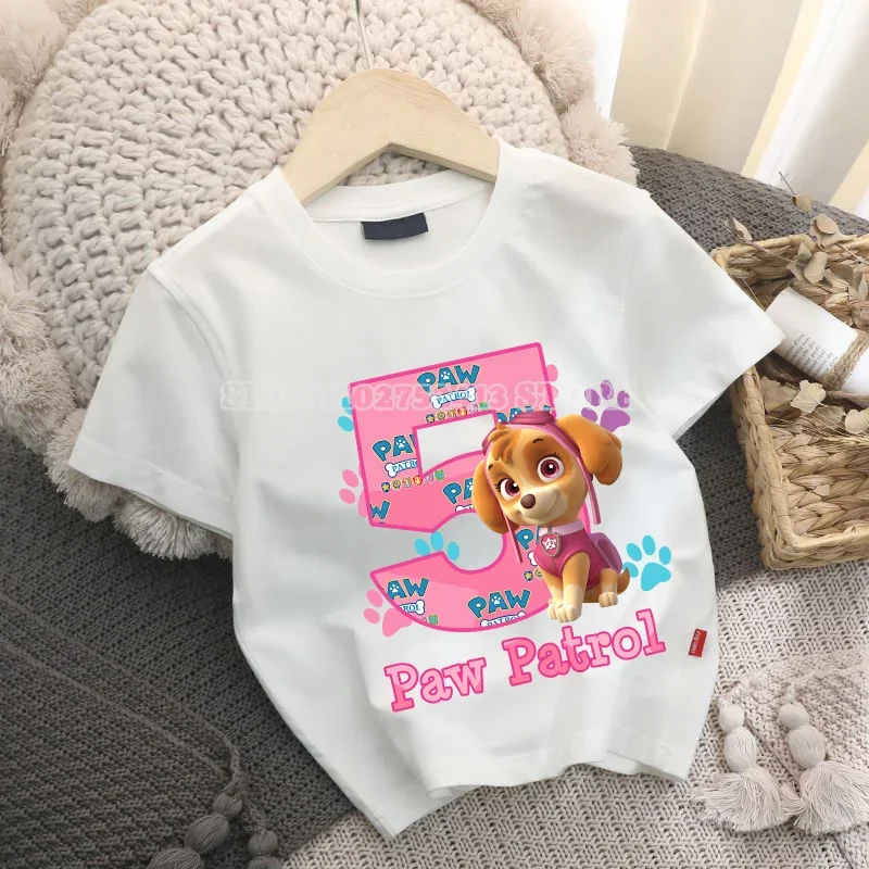 Paw Patrol Kids Clothes Cartoon Anime Skye Clothing Crew Neck Girls Baby Skin-friendly Breathable White T-Shirt Birthday Gift  Read more