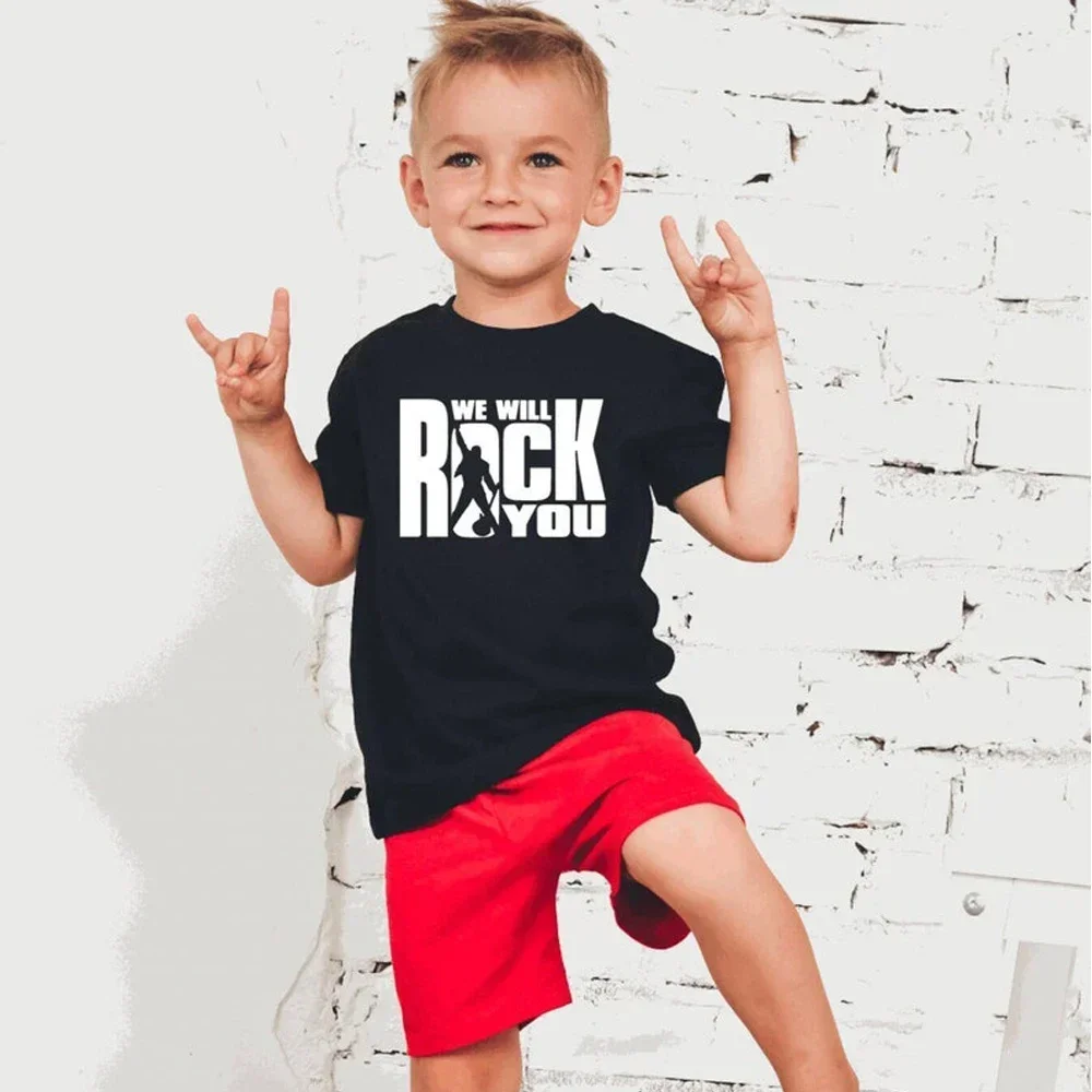 We Will Rock You Queen Print T Shirt Kids Summer White Tops Children Fashion Casual T-shirt Rock Anthem Childrens Tshirt