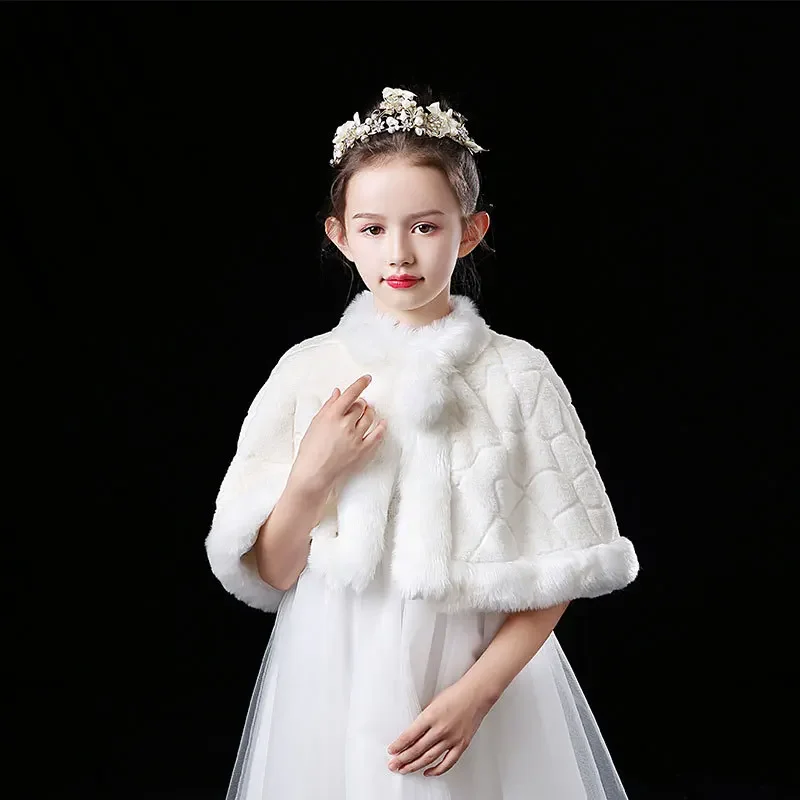 Girls Faux Fur Wedding Party Jacket White Wraps Shawl Cape Stole Girls Bolero Shrug For Children Winter Kids Warm Coat 2-12T