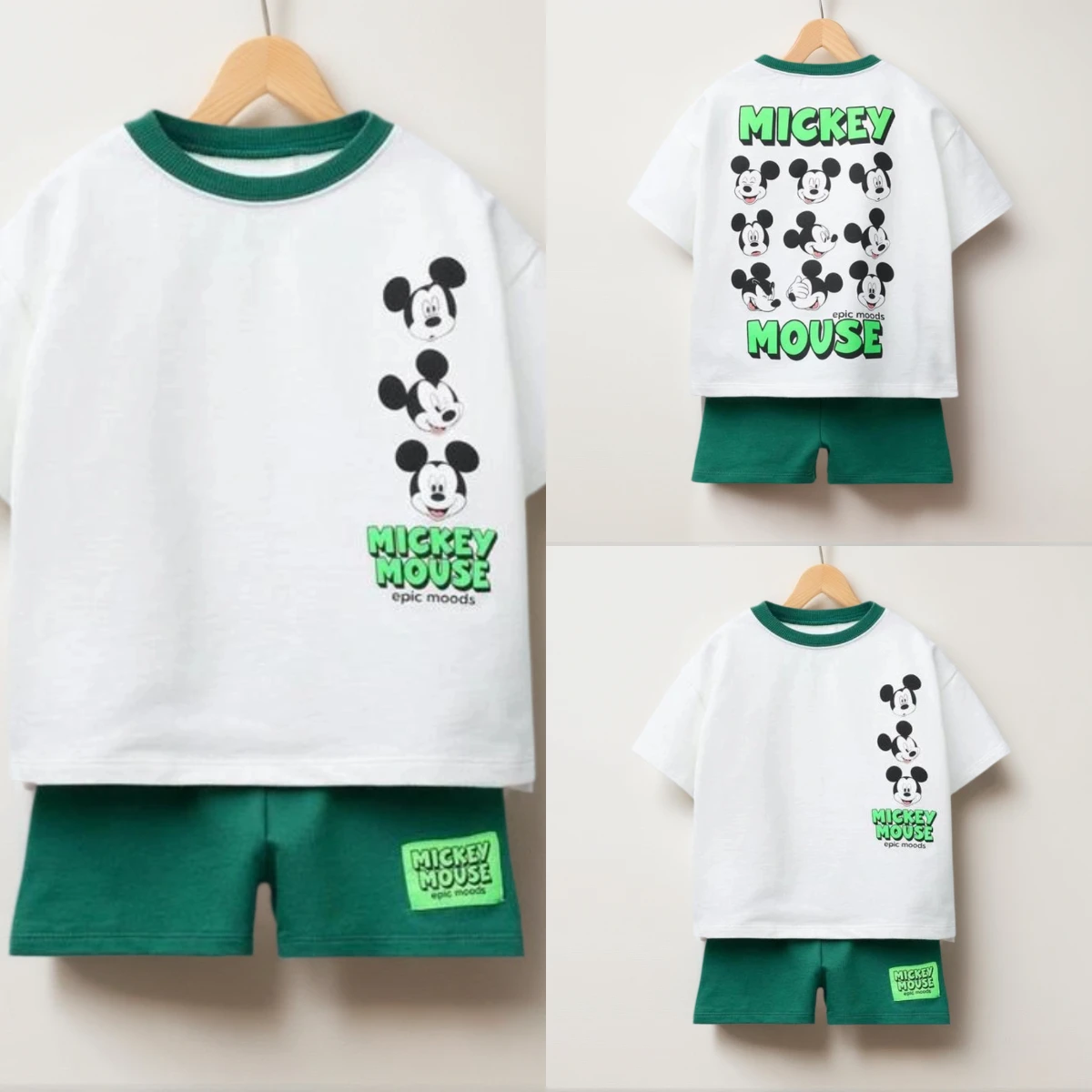 Disney Child Trendy Clothing Tshirt Loose 2pcs Set Boys All-match Shorts Short Sleeve White Cartoon Tees Shorts Child Outfits