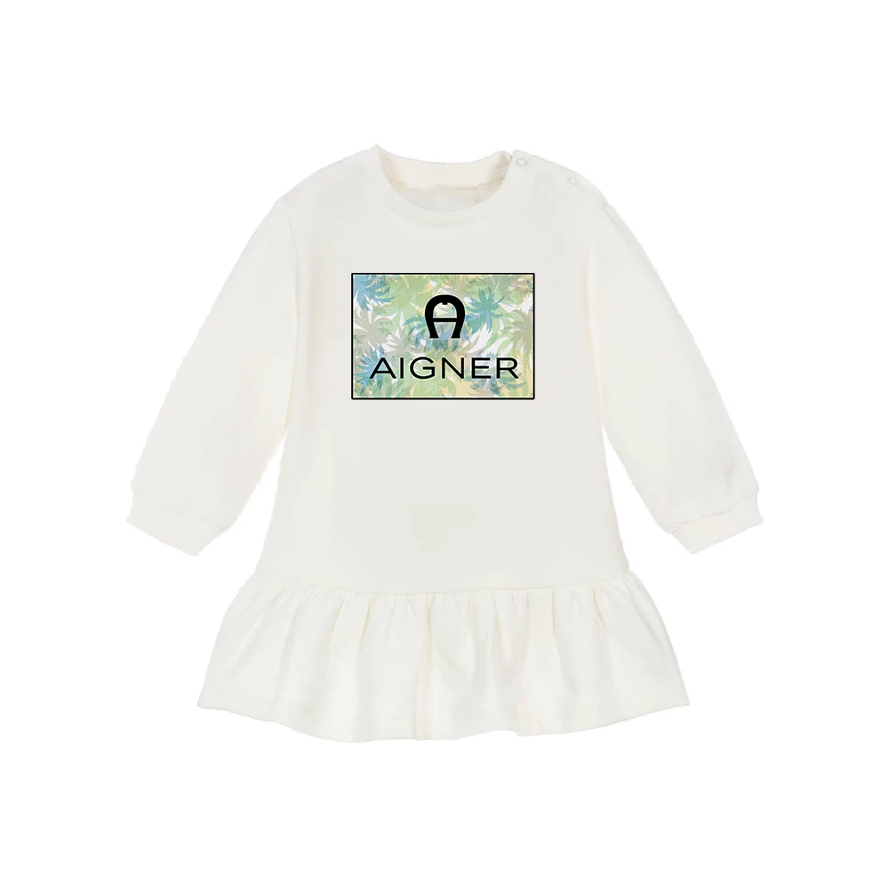 Autumn new children's clothing, high-end fashion, girls' dress, letter printed long sleeved white dress, daily casual clothing