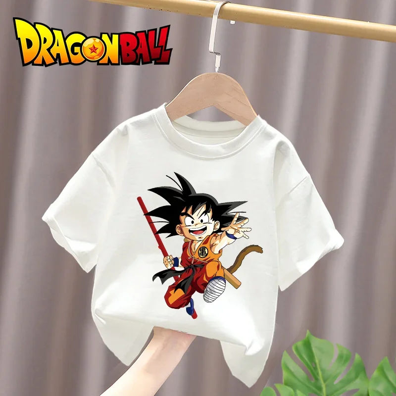 Dragon Ball Boys White Cotton T-Shirt Sun Goku Toddler Short Sleeve Tee Shirts Cartoon Summer Clothes Kawaii Tops Birthday Gifts