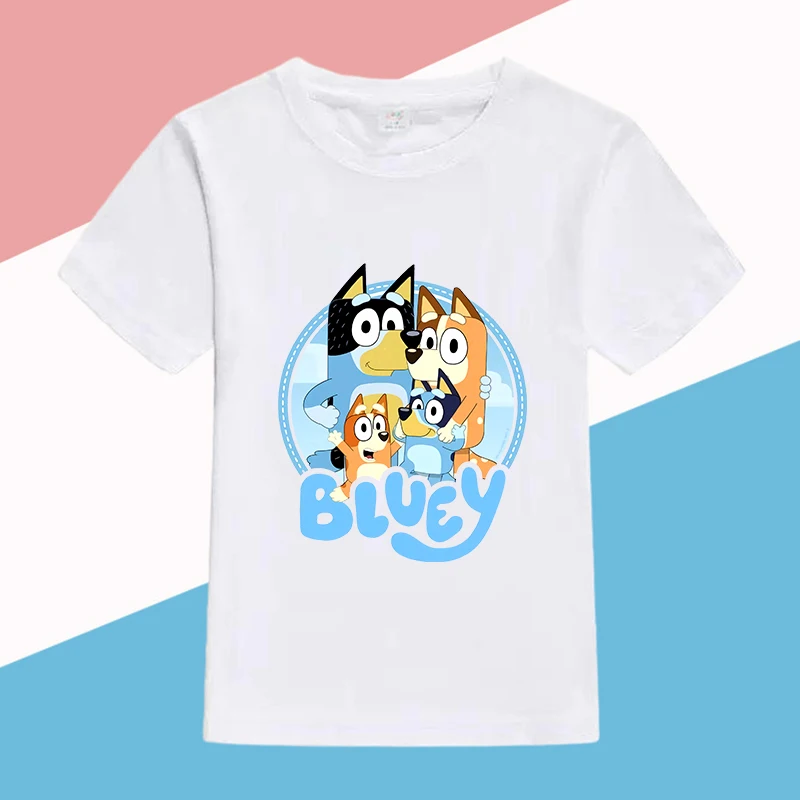 Blueyi Series Short Sleeve Clothes White Summer Bingo Kids T-Shirt Cartoon Dog Pattern Tees Cute Boy Girl Tops Birthday Gifts