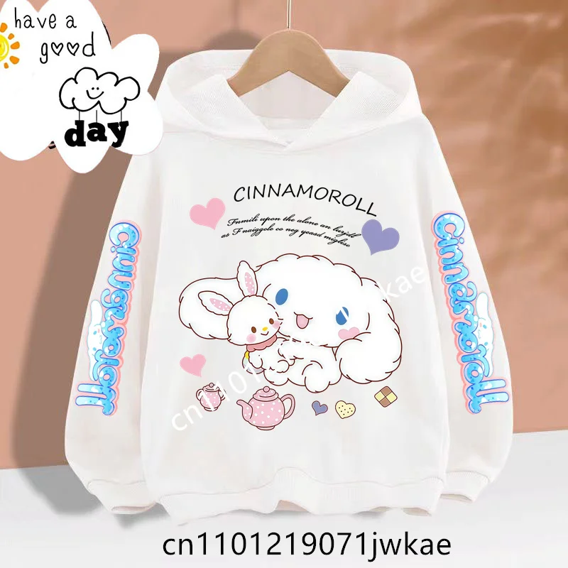 Anime Sanrio Cinnamoroll Children's White Hoodie Print Sweatshirt Kawaii Cute Casual Fashion Loose Top Kid Clothing Gift Girl
