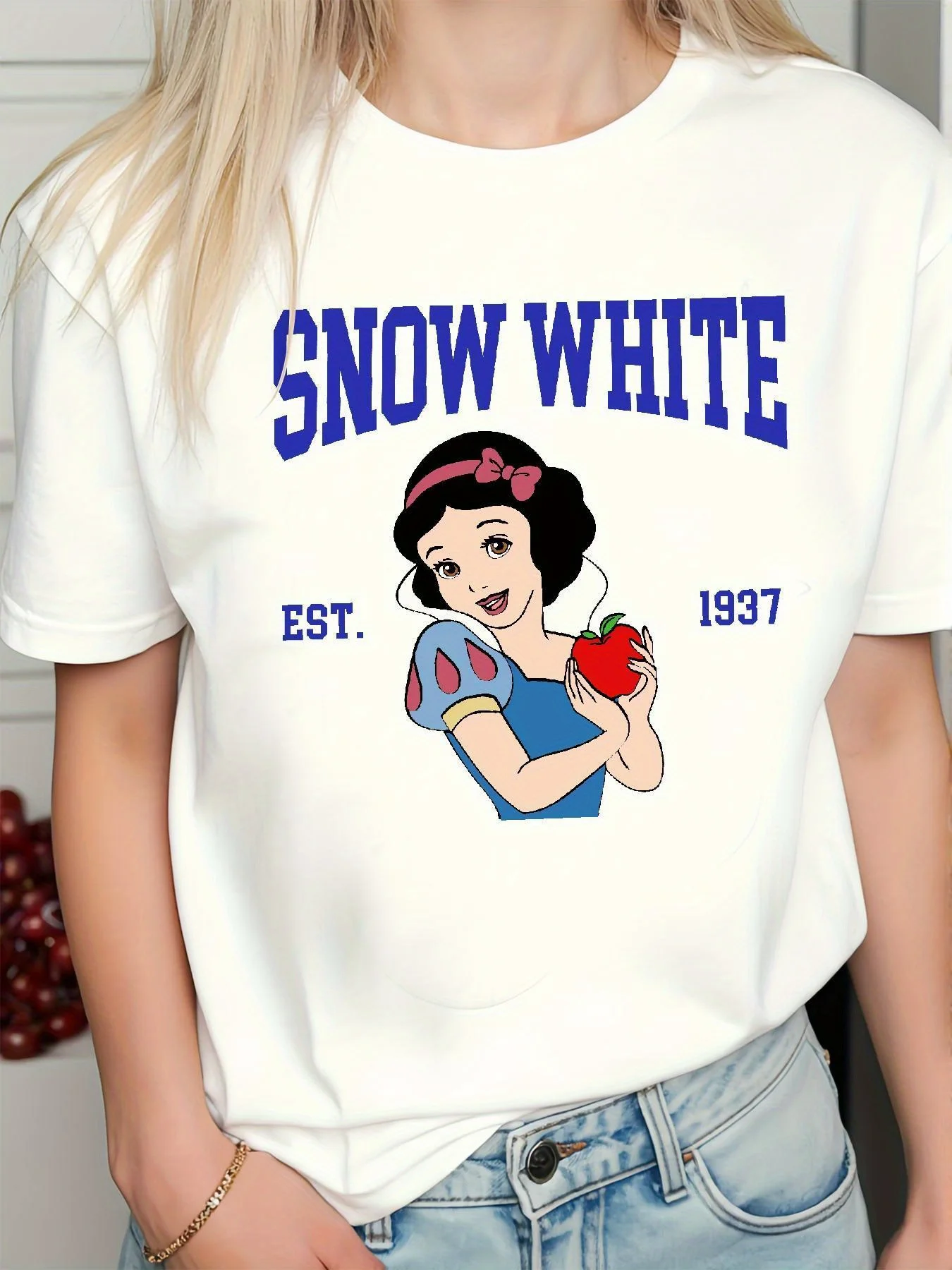Disney Snow White Pattern T-shirt Parent-child Clothing Casual Cotton Short Sleeve Travel and Vacation Wear Unisex Oversized