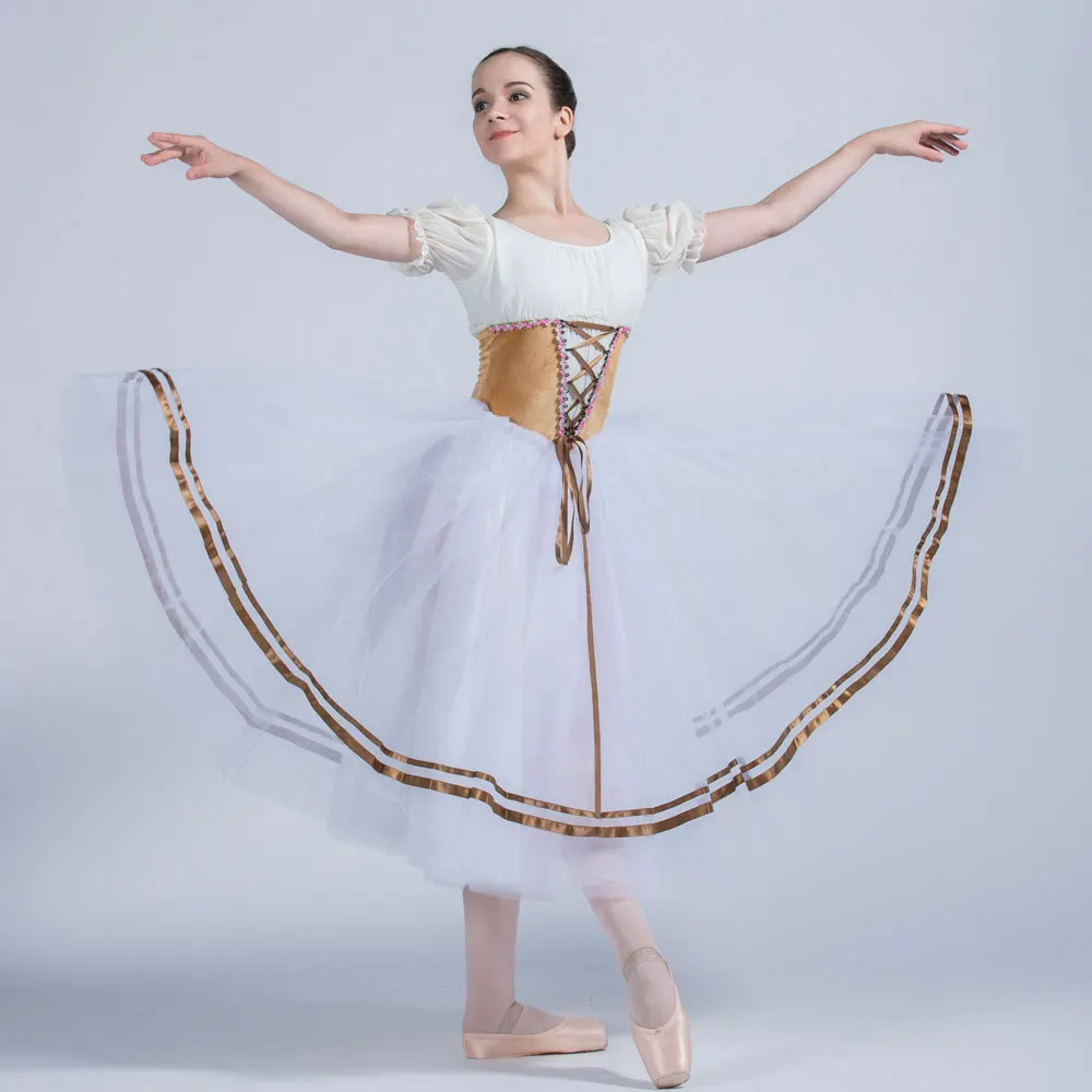 20020 Adult Girls Ballet Tutu Short Sleeve Light Brown Velvet with Chiffon Bodice Leotard White Long Romantic Ballet Tutu Dress