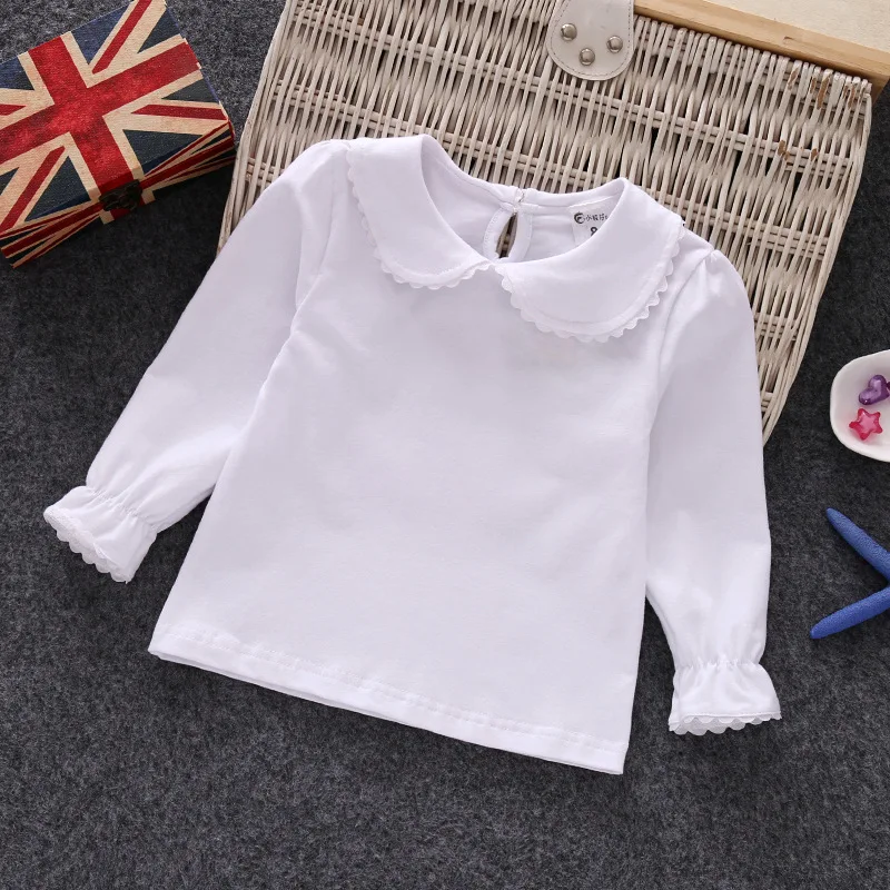 Fall Spring Little Girls Shirts Cotton Lace White Long Sleeve Child T-shirt Girls Kids Baby Toddler Tops and Blouses