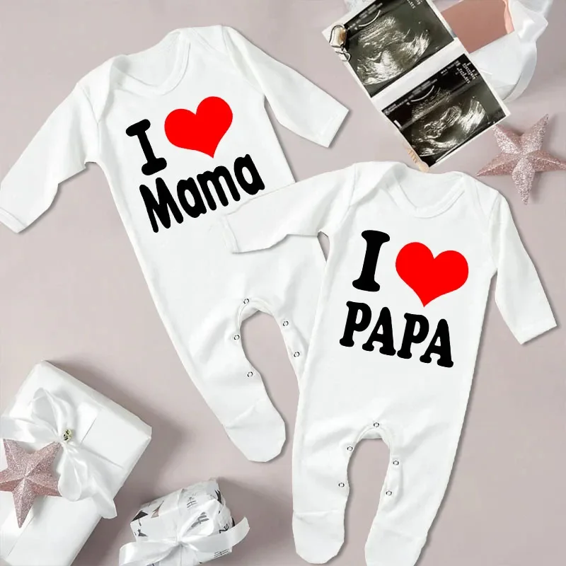 I Love Papa&I Love Mama Print Baby Sleepsuit Baby Coming Home Outfit Newbron Shower Gift Boy Girl Sleepsuit Infant White Romper