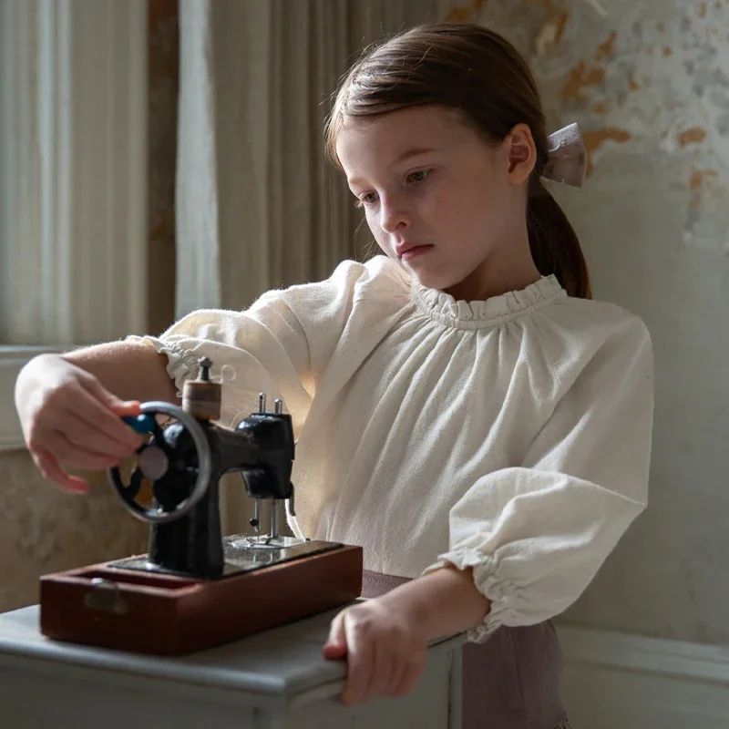 100% Cotton Girls Frilled Crew Neck Blouse Autumn New White Shirts Long-Sleeved Casual Loose Children's Tops TZ353