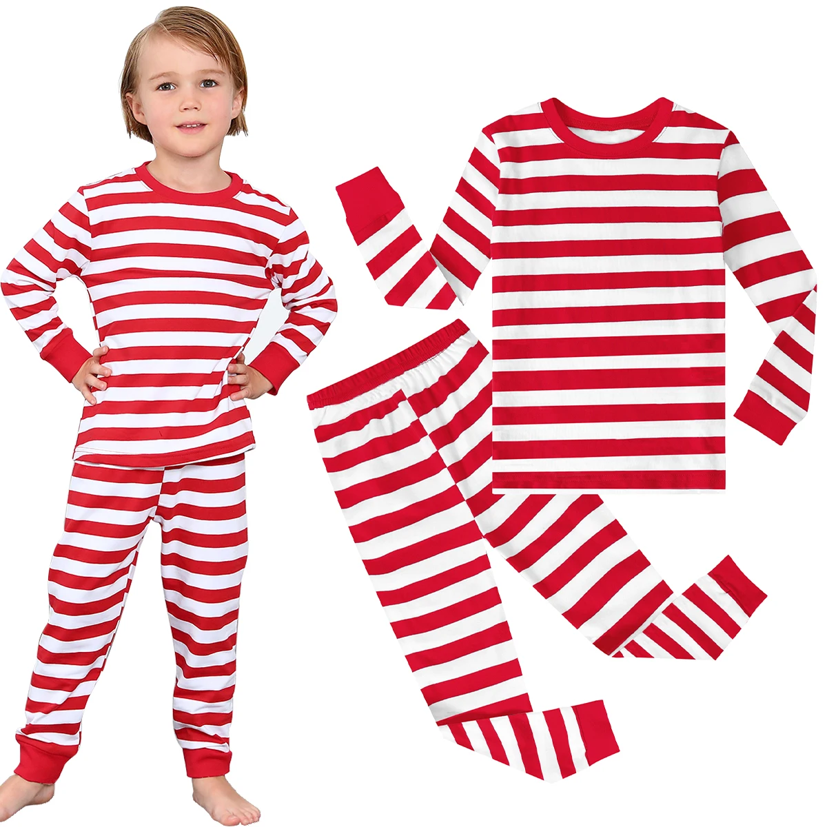 Red and White Striped Pajamas Toddler Boys Girls American Reading Day Kids Halloween Christmas Xmas Party Gift Pjs Clothes