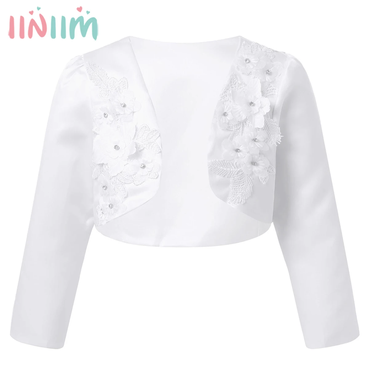 Flowers Beaded Girls Cardigan 3-12Y Girl Long Sleeve Jacket Wedding Dress Party White Bolero Girls Clothes Outerwear Girls Coat
