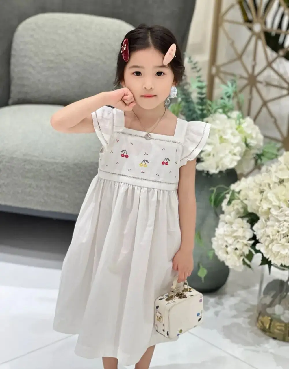 summer baby girls clothes kids dresses cherry pattern embroidery Sweet white girl's dress  Read more