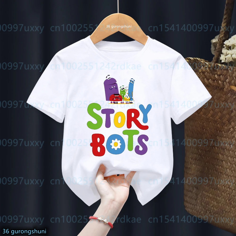 T-Shirt For Boys Funny Animation Ask The Storybots Cartoon Print Kids Tshirt Fashion Boys Clothes Summer White Short Sleeved Top
