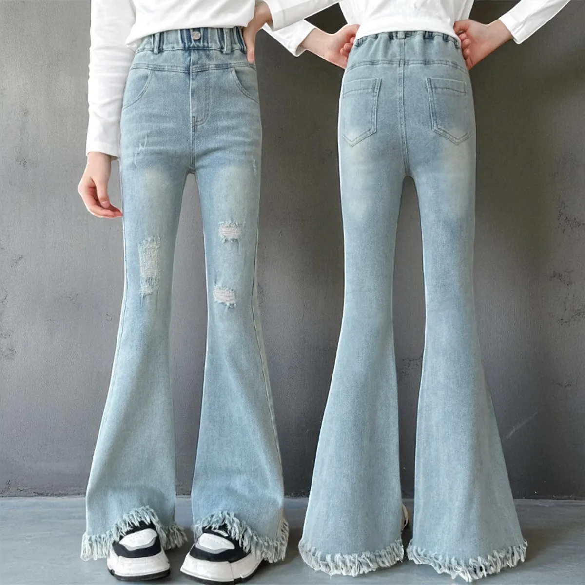 Big Girls Casual Denim Pants for Girls Jeans Kids Cargo Pants Girls Trousers Blue Streetwear Children Clothes 6 8 10 12 13 Years