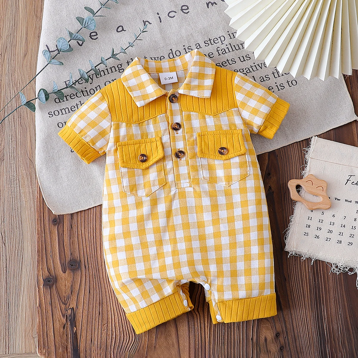 Summer Yellow Infant Baby Unisex Boys Girls Romper Plaid Print Short Sleeve Button Front Jumpsuit Daily Casual Clothes For 3-18M  Read more