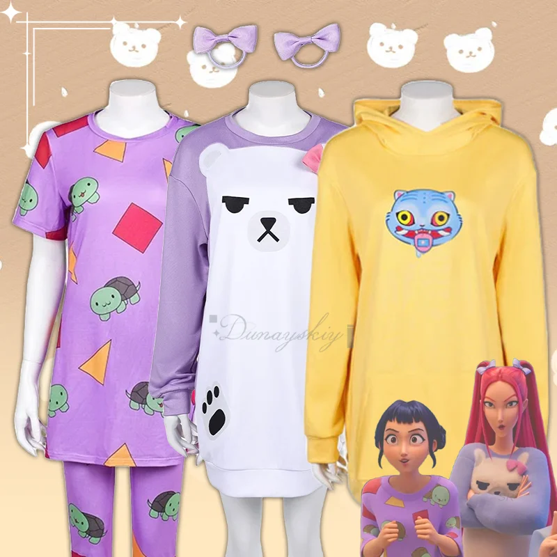 KPop Zoey Mira Cosplay Yellow Hoodie Pajamas Cute Bear Pajamas Hunters Roleplay Idol Girls Daily 코스프레 Halloween Carnival  Read more