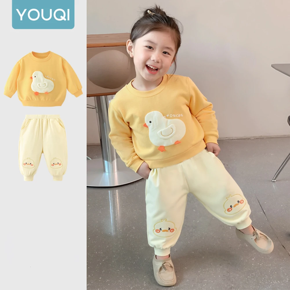 Children's new yellow duck series autumn outfit 2025 new baby split top pants baby hoodie two-piece set for external wear