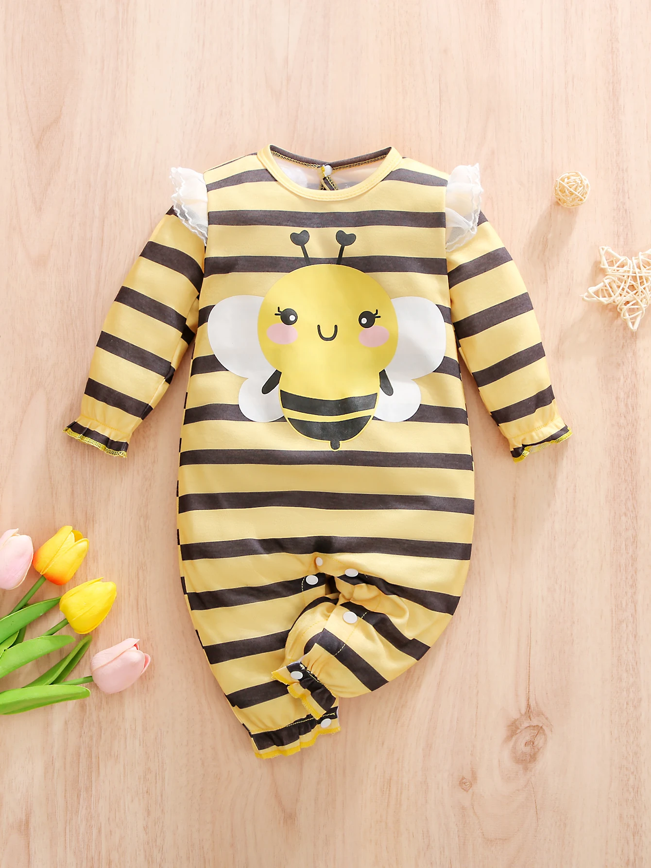 One-piece baby spring and autumn yellow striped little bee boys' and girls' long-sleeved 1-3 years old cute crawling suit  Read more