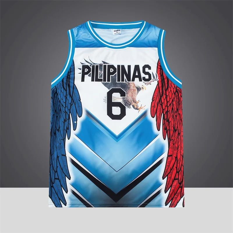 Philippines Basketball Jersey - Blue & Red Wing Graphic "PILIPINAS 6" Eagle Design Artistic Athletic Jersey