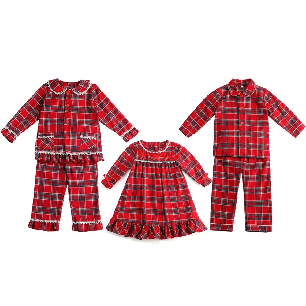 Ready To Ship Christmas Family Pajamas Red Gingham Sleepwear Girl Sleep Gown Baby Boy Girls Pajamas
