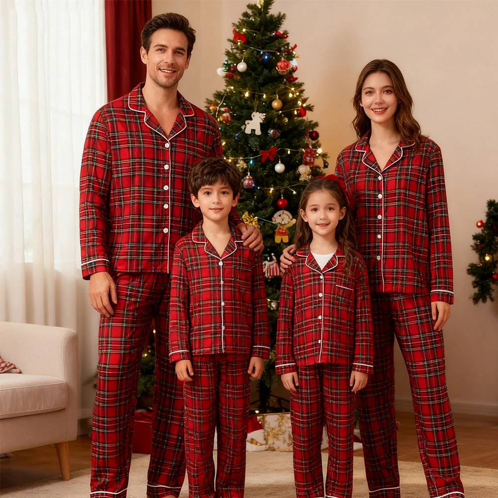 Family Christmas Pajamas Matching Sets Adult And Kids Xmas Red Plaid Button Shirts Tops+Pants Baby Romper Loungewear Pyjamas