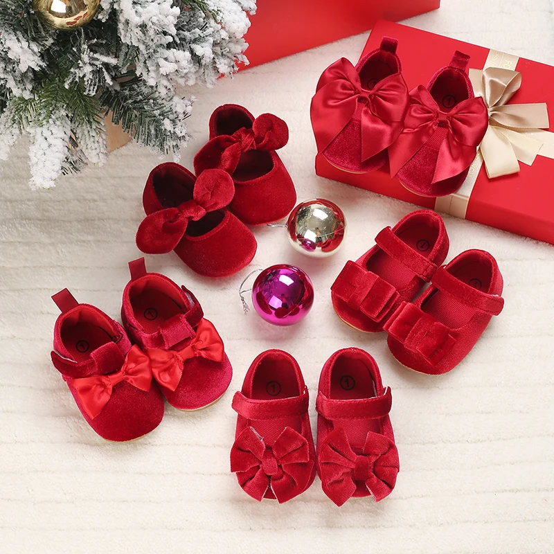 HAIZHIW Christmas Prewalker Newborn Baby RED Bow Solid Color Soft Comfort 0-18 Months Baby Casual Shoes Toddlers