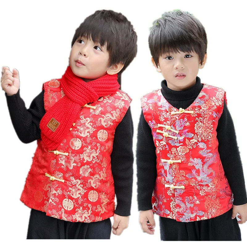 Red Celebration Children Vest Coat Chinese New Year Baby Boy Clothes Winter Thick Kids Vest Outfits Outwear Kid Waistcoat Dragon