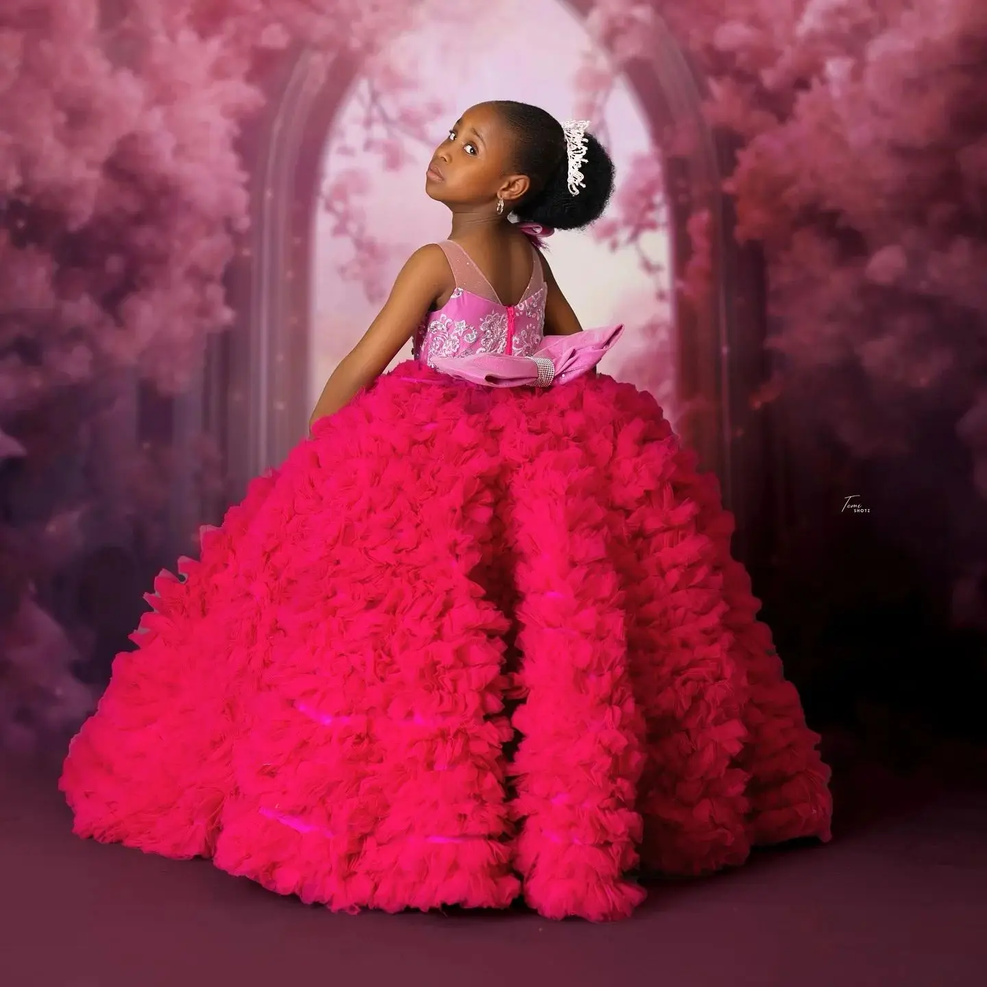 Luxury Red Girls Birthday Party Dresses Princess Beaded Extra Puffy Flower Girl Dresses Baby Kids Ball Gowns for Photo Shoot