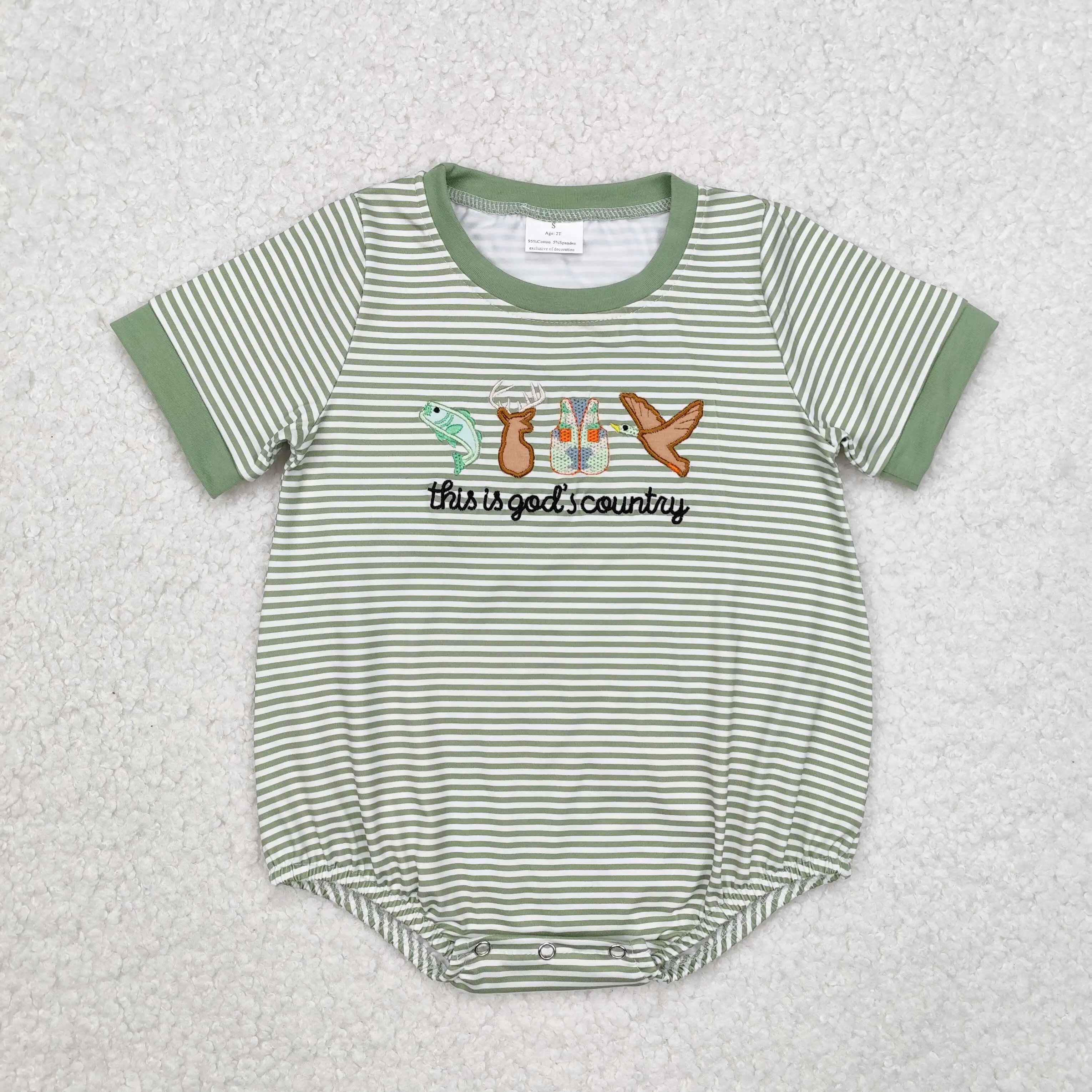 New rts infant boys summer green rompers wholesale boutique embroidery fishing hunting boys onesies