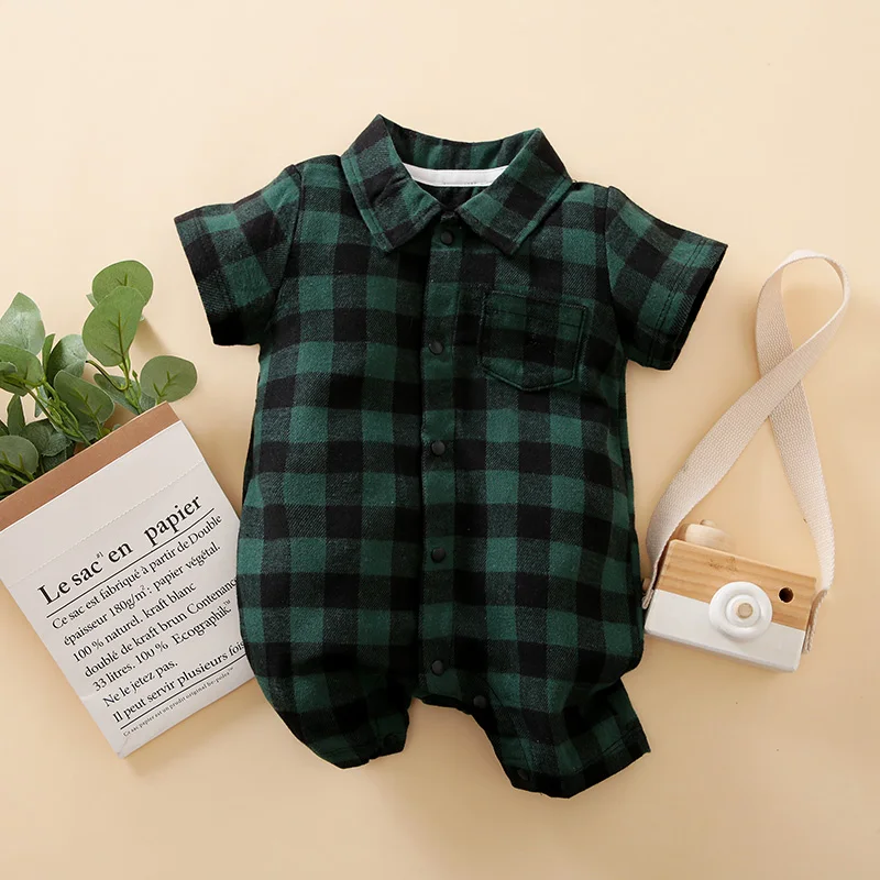Green Plaid Boy Romper Newborn Baby Boy Clothes One piece Summer short-sleeve baby Jumpsuit Fashion Gentleman Costume For Babies