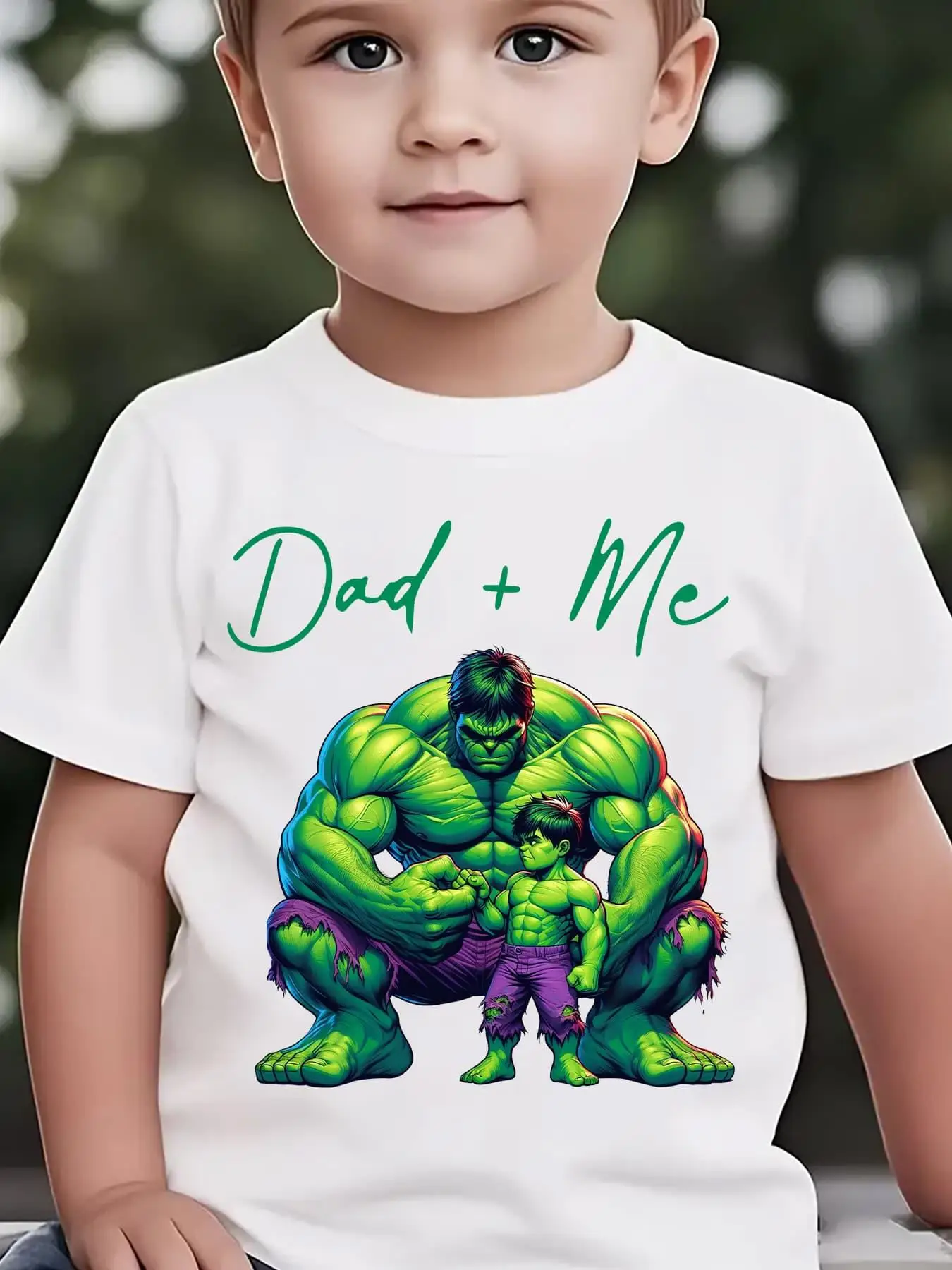 MARVEL Boys' Summer Short Sleeve T-Shirt - Dad+Me Hulk Graphic Print, Vibrant Green Casual Tee with Hulk & Dad Design, Breatha
