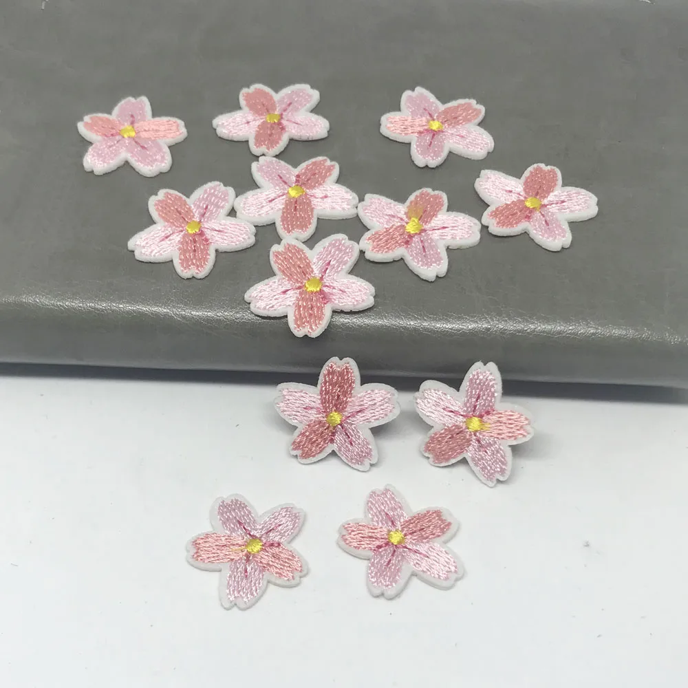 MAXSIN FUN 10 PC Small Pink Cherry Flower Patches Clothing Embroidery Sticker Iron On Kids Dress Bags Applique DIY Decoration