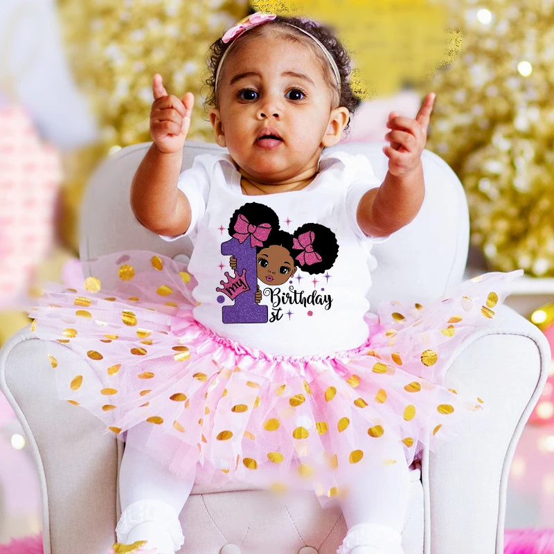 My 1st Birthday Baby Girl Dress Set Infant Birthday Party Pink Tutu Cake Dresses + Romper Outfits Girls Summer Clothes Jumpsuit