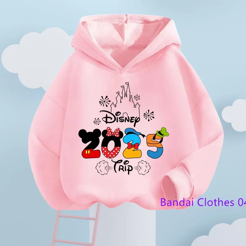 Disneyland Trip Vacation Clothes Caricature Pink Hoodie Children Top Cartoons Disney Kawaii 2025 Girl Clothes Boy Disney Kids