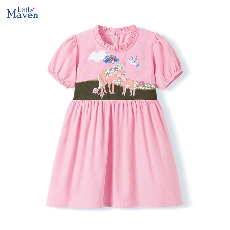 Little maven Summer Children's Clothing Baby Girl Cartoon Unicorns Embroidered Princess Dresses Kids Clothes Corduroy Pink Dress  Read more