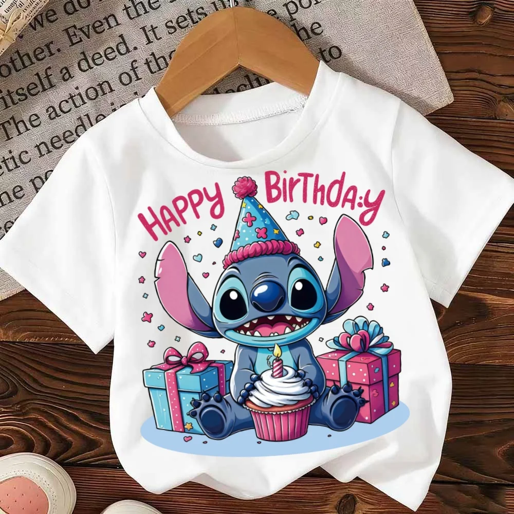 Summer Stitch Disney Baby Girls Birthday Number 1-9 T-shirt Cartoon Party Supplies Clothes Cute Short Sleeve Pink White Tshirt