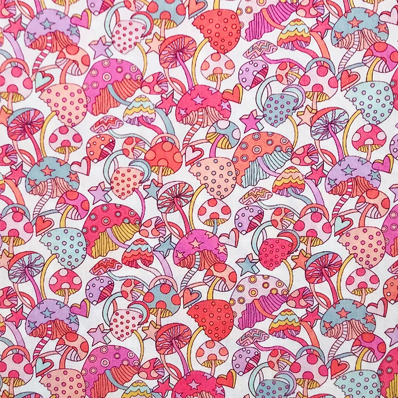 Pink Mushroom 80S Tissunliberty Cotton Fabric For Kids Baby Sewing Cloth Dresses Skirt DIY Handmade Designer 0.5Meter 2021