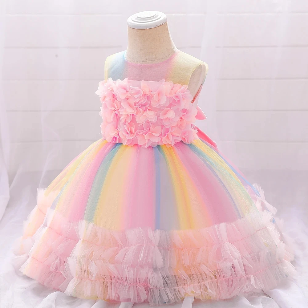 Fluffy Flower Bridesmaids Party Baby Girls Dress Formal Pink Tulle Baptism 1st Birthday Princess Girl Dresses Wedding Prom Gown  Read more