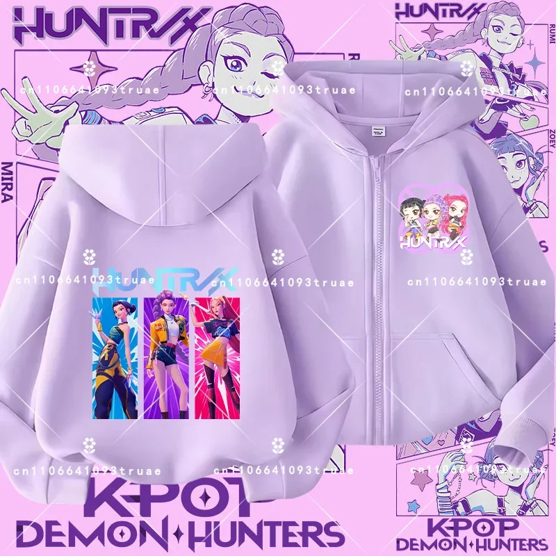 Hot Funny Zip Up Sweatshirts Kpop Demon Hunters Hoodie Children Clothes Kid Girl Boy Sweatshirt Zipper Hoody Baby Casual Top
