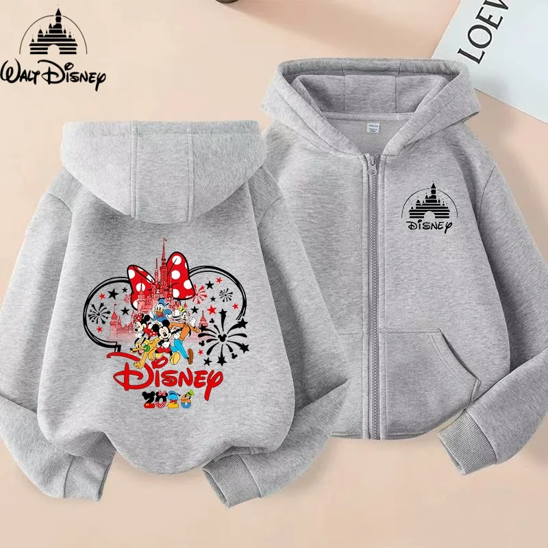 Children Top Kawaii Vacation Clothes Zipper Hoodie Minnie Mouse Girl Boy Disney Fashion Disneyland Trip Cartoons 2026 Disney