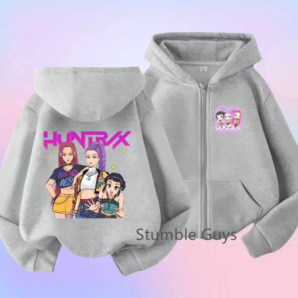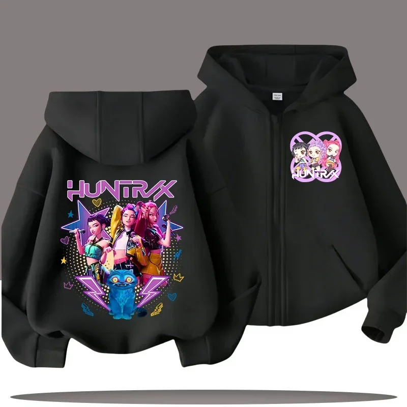 Autumn Kids Long Sleeve New KPop Demon Hunters Zipper Hoodie Soft Fleece Sweatshirt Boys Girls Warm Casual Children's Outerwear​