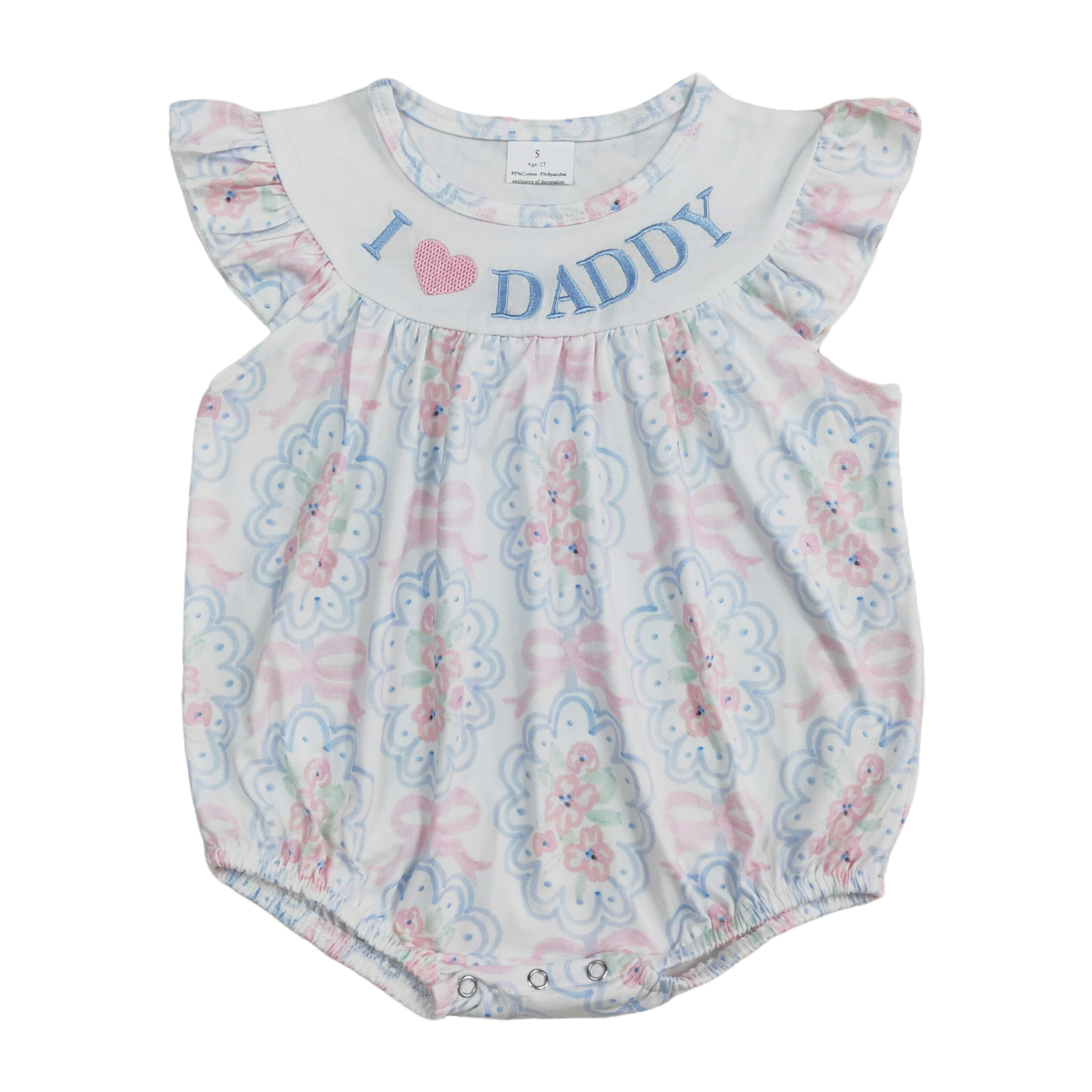 Wholesale Baby Girls Embroidery Bubble Coverall Newborn Children Bodysuit Short Sleeves Bows Toddler Kids I Love Daddy Romper