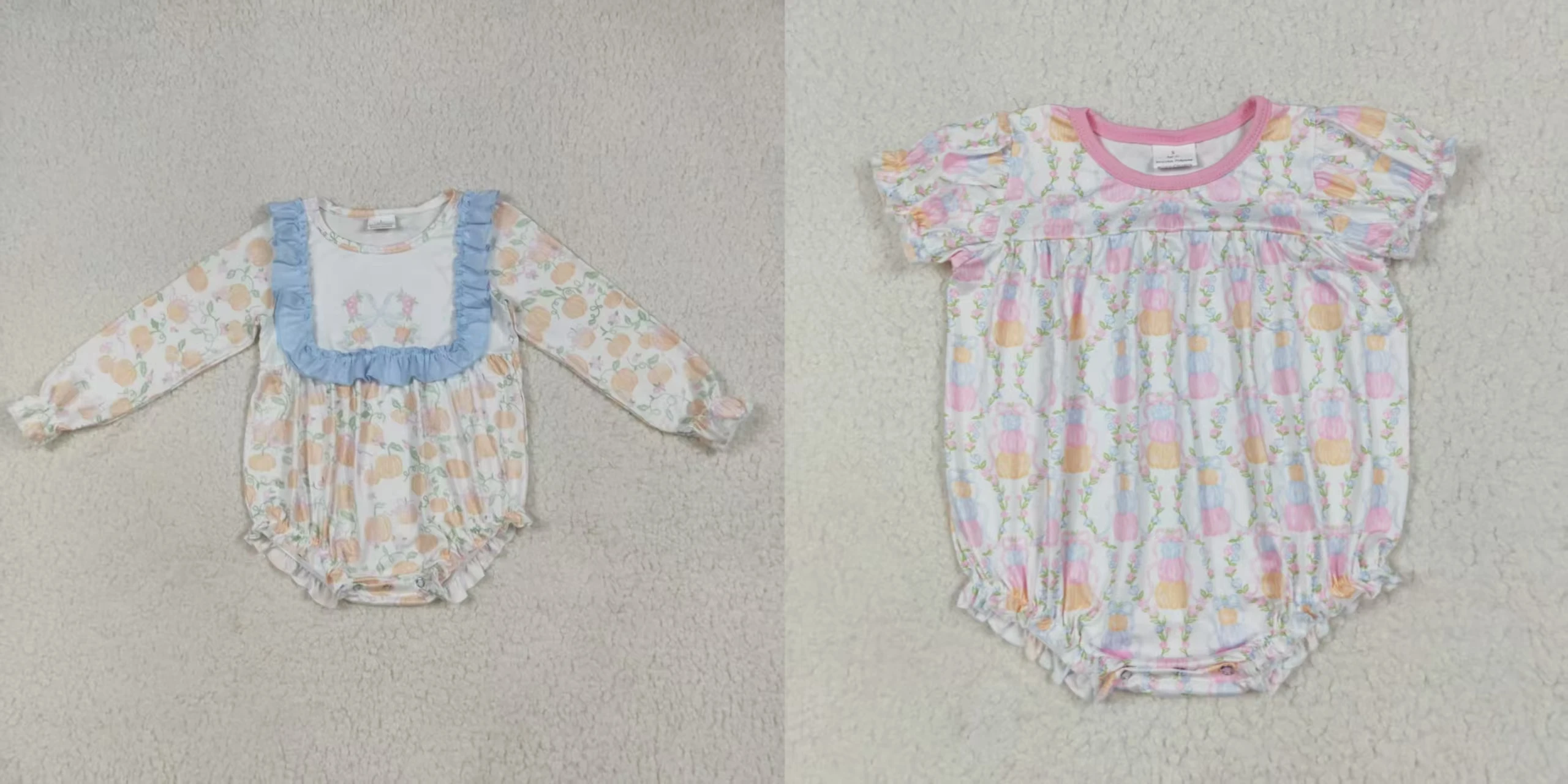Wholesale Toddler Thanksgiving Children Pumpkins Bows Floral Breathable Romper Baby Girl Newborn Coverall Ruffle Bubble Bodysuit