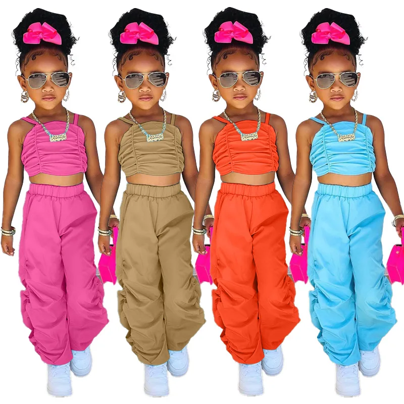 1-8years Baby Kids Summer Clothing For Girls Sleeveless Crop Tops+Cargo Pants 2pcs/sets Children's Fashion Clothes Outfits Girl