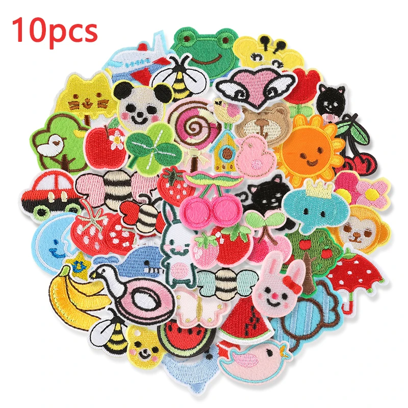 10pcs Lot Cute Patch With Iron On For Clothing Embroidered Kids Animals Small Jacket Thermal Diy Naszywka Sewing Bulk Wholesale