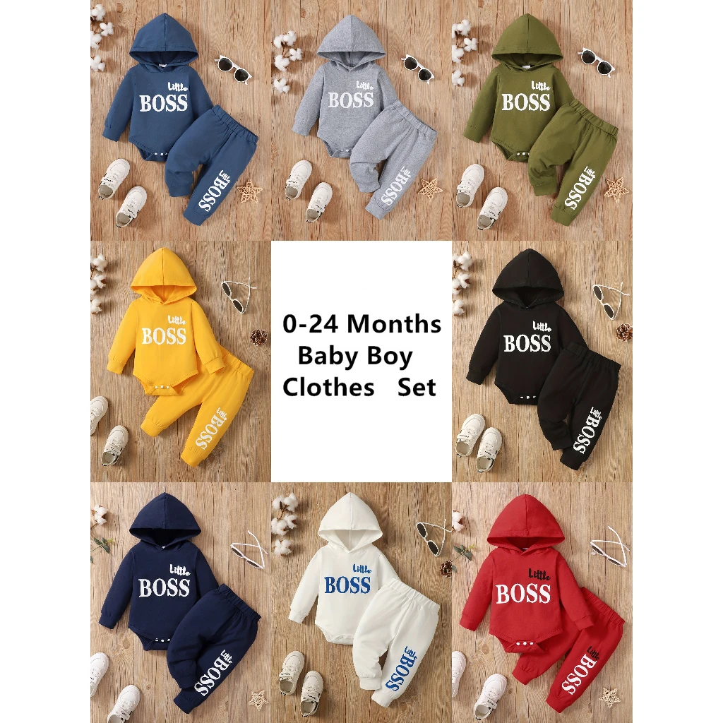 3-24 Months Newborn Baby Boy Clothing Suit Long Sleeve Hooded Romper+Pants Spring&Autumn Sports Style Toddler boy 2PCS Clothes