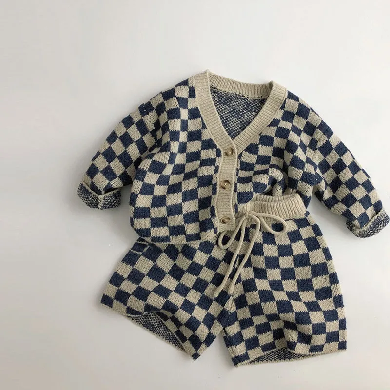 2024 Spring Autumn Children Knitted Plaid Sweater Boy Baby Knit Cardigans Toddler Girl Casual Long Sleeve Coat Kid Cotton Jacket
