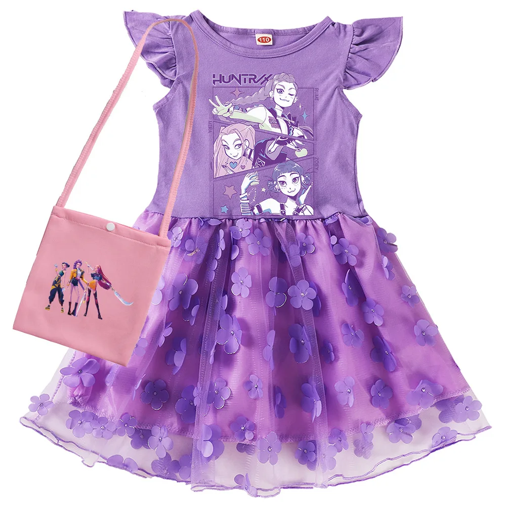 Kpop Demon Hunter Clothes Kids 2025 Summer Casual Dresses Girls Short Sleeve Dress Children Fancy Mesh Wedding Princess Vestidos