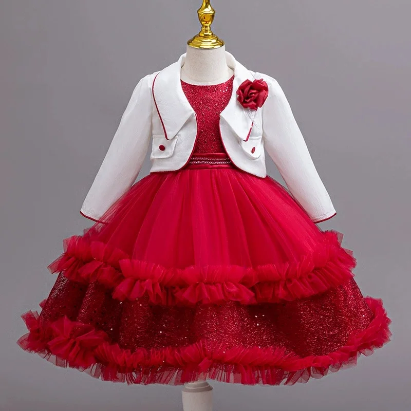 Baby Girls Elegant Princess Dress for Girls Sequins Red Luxury Vintage Children Gown Festival Party Gown Flower Girls Vestidos