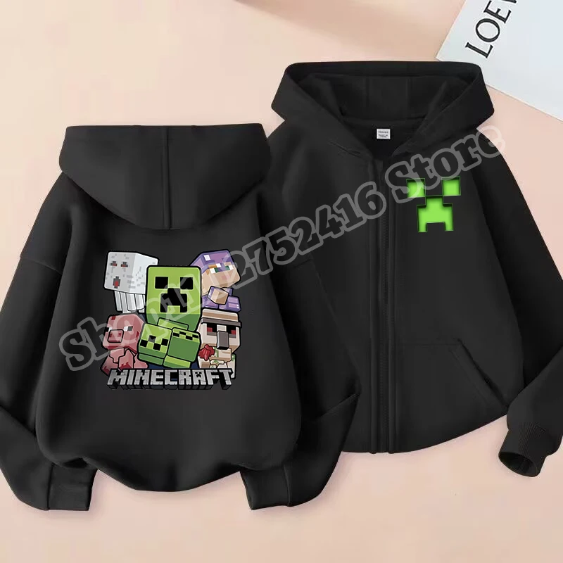 Miner Crafted Child Cardigan Hooded Jacket Game Themed Print Polyester Outerwear Boys Girls Winter Casual Warm Clothing Kid Gift